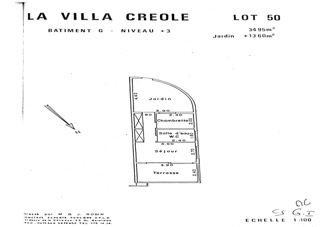 • Appartement à vendre St Barth 1 chambre climatisée 1 séjour climatisé 1 terrasse couverte 1 cuisine extérieure en terrasse Petite vue mer Petite piscine collective