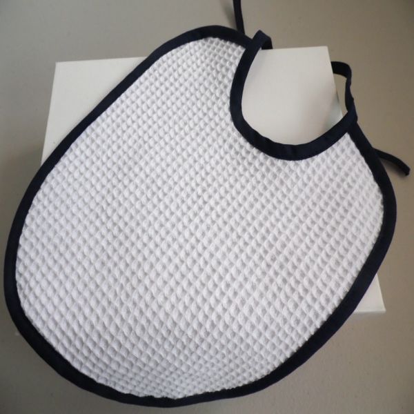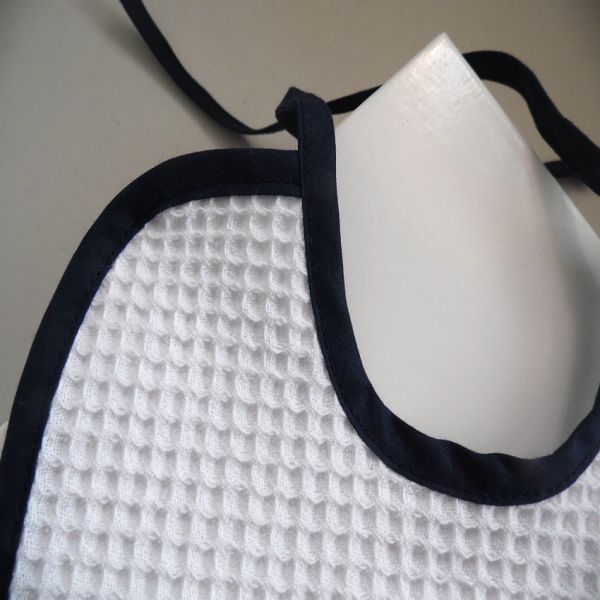 - Bavoir blanc gaufré bébé fait main : Vêtement création bébé tissu fait main : bavoir en tissu gaufré, finition biais coloris bleu marine le tout entièrement fait-main en vente sur ma boutique en ligne Bleu Blanc Neige (tapez Bleublancneige dans google pour arriver sur ma boutique)
