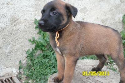 - Naissance de 8 Chiots Berger Belge Malinois le 01 Avril 2011. 5 Femelles et 3 Mâles. Reste de dispo 1 Mâle et 4 Femelles Tous Fauve Charbonné Masque Noir . Les chiots seront vendus à l’âge de 8 semaines au LOF, vaccinés, pucés, vermifugés, avec certificat de bonne santé établi par le vétérinaire et des garanties vétérinaires. Les bébés sont nés à la maison et élevés en famille avec nos enfants de 2 et 8 ans ainsi qu’avec nos autres animaux (chiens, chats et chevaux). Plusieurs chiots issuent de ce mariage travaillent en Sécurité et en Ring. Les chiots sont issus d’une lignée de travail ( chien à gros caractère). Mère : CALOA du Djinn de tous les Déserts ( Pow-Wow des Loups Mutins x Aloa de l’Arche d’Acobari) identifiée par taouage 2 FDY 982 Pedigree 69981/8551 Issue de Jerry des Souverrains de Lorraine CH CTR s.r., Cheyenne des Loups Mutins CH Fr Ring , Badge des Loups Mutins CH Fr Ring, Roméo du Clos de Champcheny, Haxo du Clos de Champcheny, Estruck Du Parc aux Acacias CH CTR, Loubard des Loups Mutins CH CTR, Cops duParc aux Acacias… Père : BOSTON de la Vallée du Grand Loup (Tonnerre des Loups Mutins x Phéline des Clans de la Pleine Lune)identifié par tatouage 2FBT540 Pedigree 66397/8921 Diplômé par le Ministère de l’Agriculture en qualité de chien d’agnt cynophile de sécurité Issu de Tonnerre des Loups Mutins Ring 3, Judex CH CTR s.r., Cops du Parc aux Acacias Fin.Ring, Kim du Boscaille, Clock du Calvaire aux Acacias, Alpha du Calvaire aux Acacias, Voltaire, Frondeuse des Loups Mutins, Loubard des Loups Mutins CH CTR, Apple des Loups Mutins, Ely des Loups Mutins Ring 3, Eoise du Château d’Agadir Br. Tr., Ivan des Deux Pottois… Pour plus d’info n’hésitez pas à me contacter. Facilité de paiement en 2 ou 3 fois sans frais.