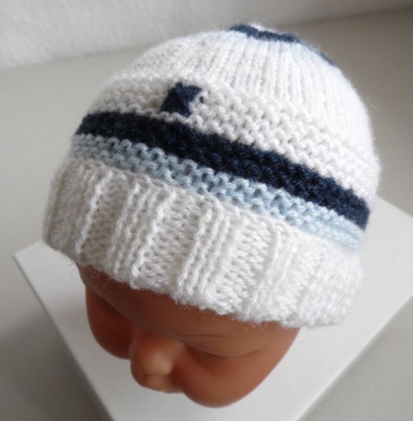 - Vêtement tricot laine bébé fait main : bonnet coloris bleu marine, bleu ciel et blanc, à rayure, avec un revers côtes 2/2, le tout entièrement fait-main en vente sur ma boutique en ligne Bleu Blanc Neige (tapez Bleublancneige dans google pour arriver sur ma boutique)