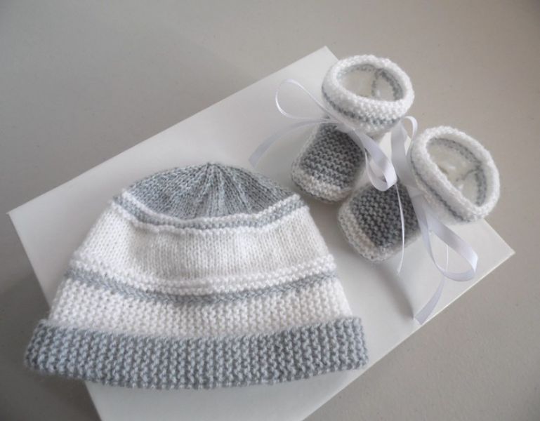 - Vêtement tricot laine bébé fait main: duo bonnet et chaussons coloris gris et blanc, le tout entièrement fait-main en vente sur ma boutique en ligne Bleu Blanc Neige (tapez Bleublancneige dans google pour arriver sur ma boutique)