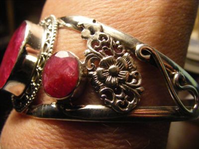 Bracelet 1/2 jonc en argent massif avec rubis véritables