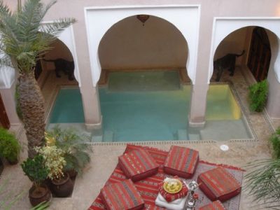 - RIAD SELOUANE Au coeur de la Médina de Marrakech, dans l'historique quartier de Dar Bacha. Hébergement tout confort: 5 chambres avec salles de bain, Salons, patio avec piscine, terrasse avec vue sur la ville, Climatisation, téléphone international, TV satellite, Wifi, coffre-fort, sèche-cheveux. Cuisine marocaine et internationale. A partir de 80.- euros pour 2 personnes (selon la période) en chambre double et par nuit, TTC, petits-déjeuners inclus. Possibilité de demi-pension à 15.- euros par personne (midi ou soir - hors boissons).