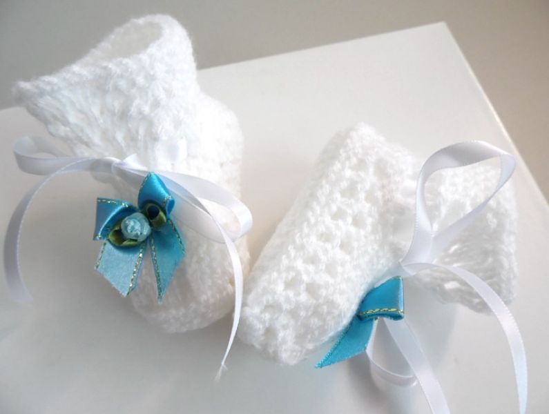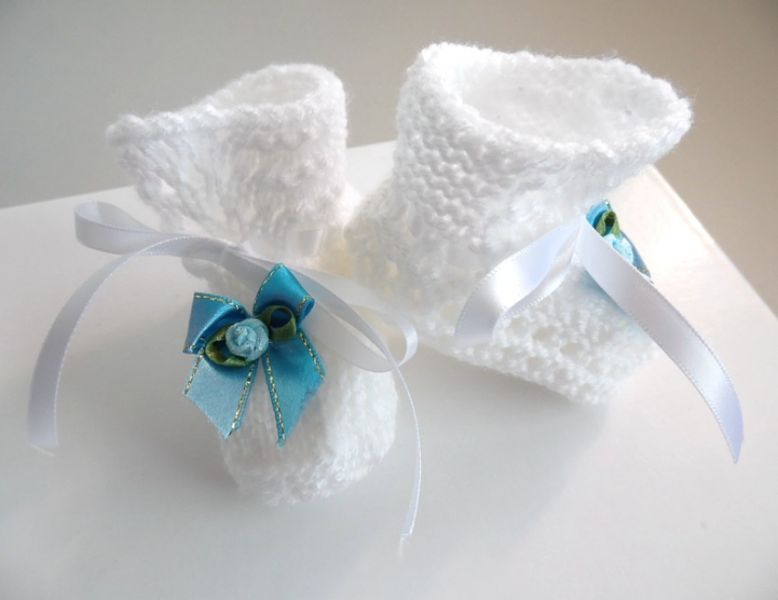 • Chaussons bébé fleur turquoise tricot laine fait main : plein de nouveaux chaussons pour bébé à découvrir sur ma boutique en ligne (tapez Bleublancneige dans google)