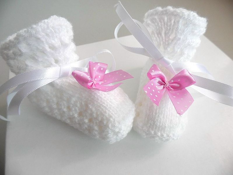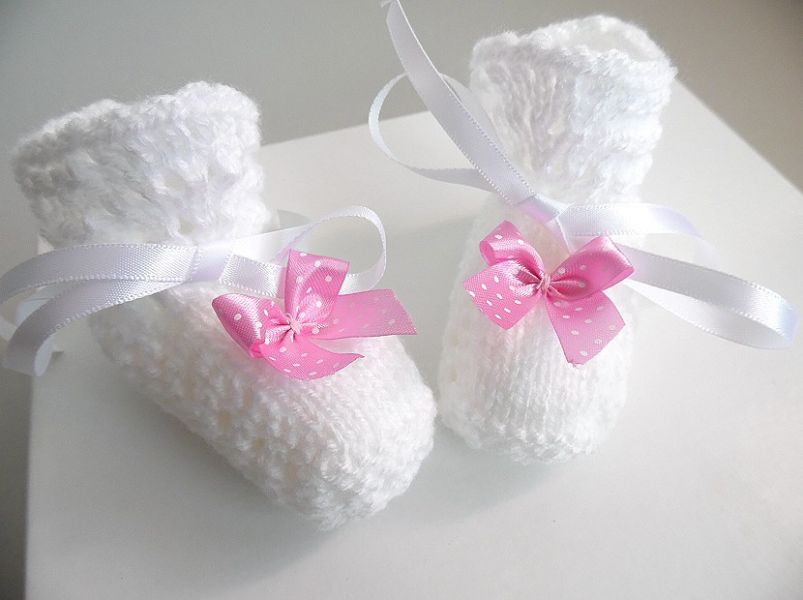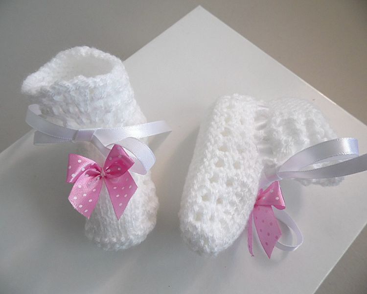 • Chaussons bébé nœud rose tricot laine fait main : plein de nouveaux chaussons pour bébé à découvrir sur ma boutique en ligne (tapez Bleublancneige dans google)