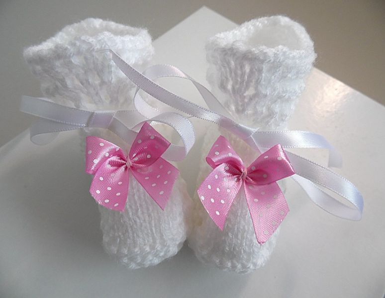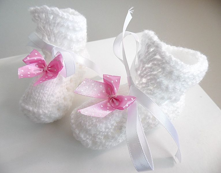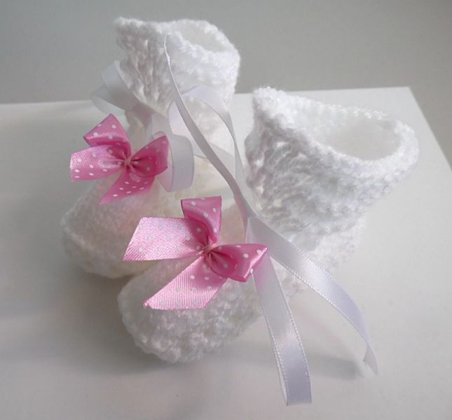 • Chaussons bébé nœud rose tricot laine fait main : plein de nouveaux chaussons pour bébé à découvrir sur ma boutique en ligne (tapez Bleublancneige dans google)