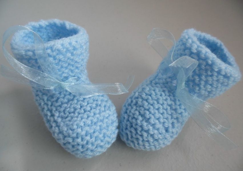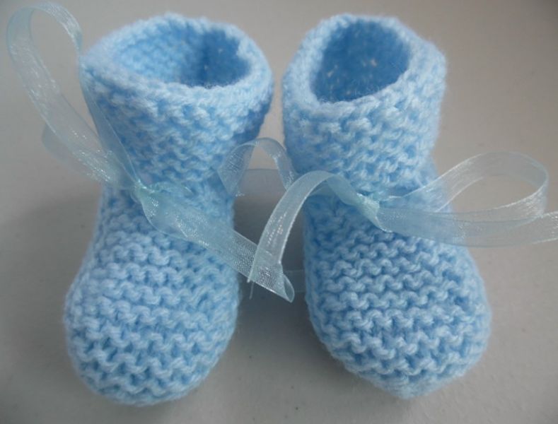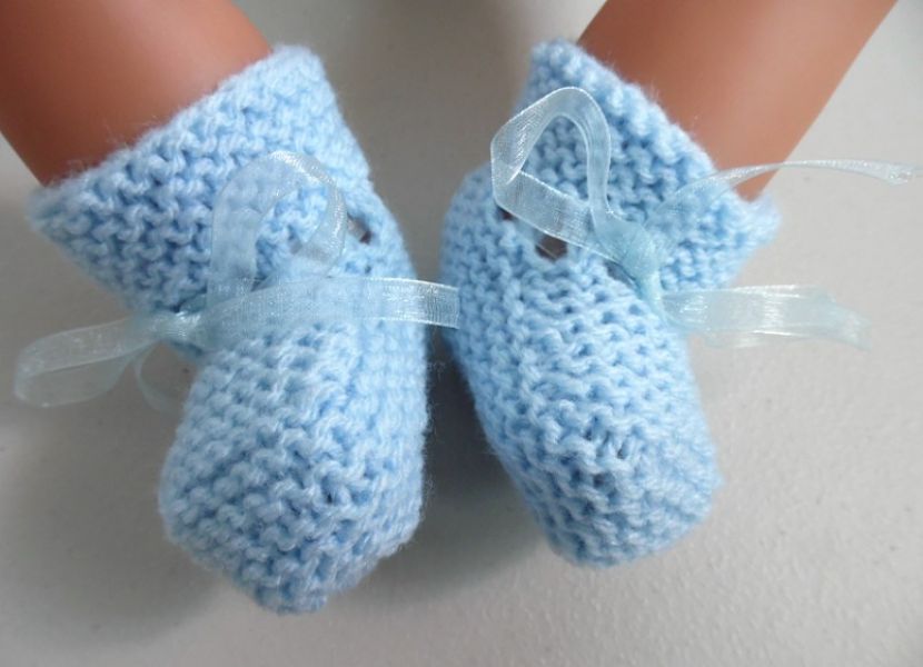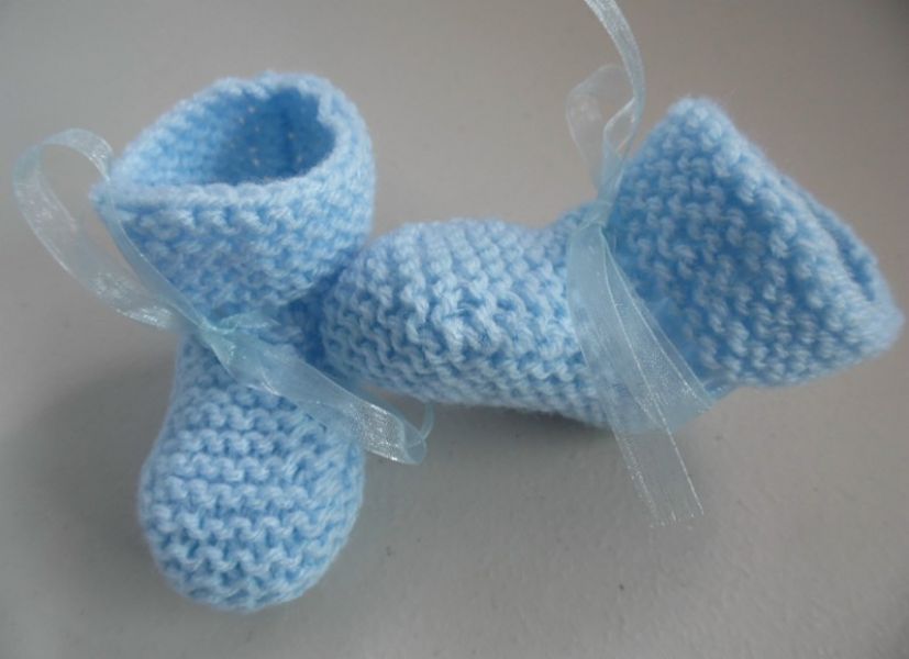 • Tricot fait main, tricot, bébé, laine : petits chaussons bleus fermé par ruban mousseline, ouvrage fait main en vente sur ma boutique creatoutcoeur (voir google).