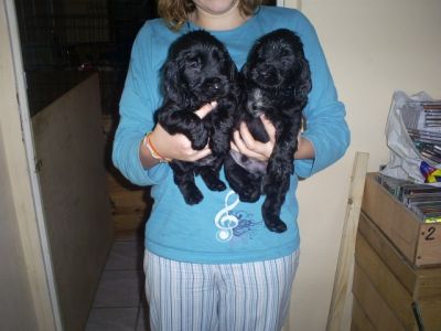 - a reserve 2 males cocker anglais noir non LOF nees le 6 decembre 2010 sur une portee de 10 chiots les chiots seront vendu a l'age de 8 semaines soit le 6 fevrier 2011 queue ecourter pucer vacciner vermifuger avec certificat de bonne sante delivrer par le veterinaire prix 350 avec facilite de paiement mere puce n°250269500330278