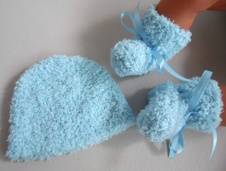 - Duo bonnet et chaussons bébé coloris bleu : Duo bonnet et chaussons bébé tricot laine fait-main, coloris bleu, doux comme du coton, à voir sur ma boutique en ligne (tapez Bleublancneige dans google) - autres coloris : blanc et rose