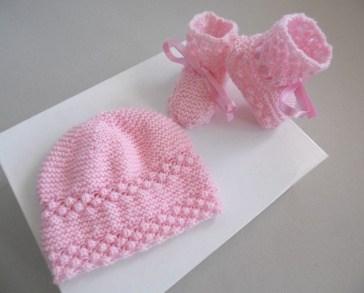 • Ensemble bonnet chaussons tricot laine fait main