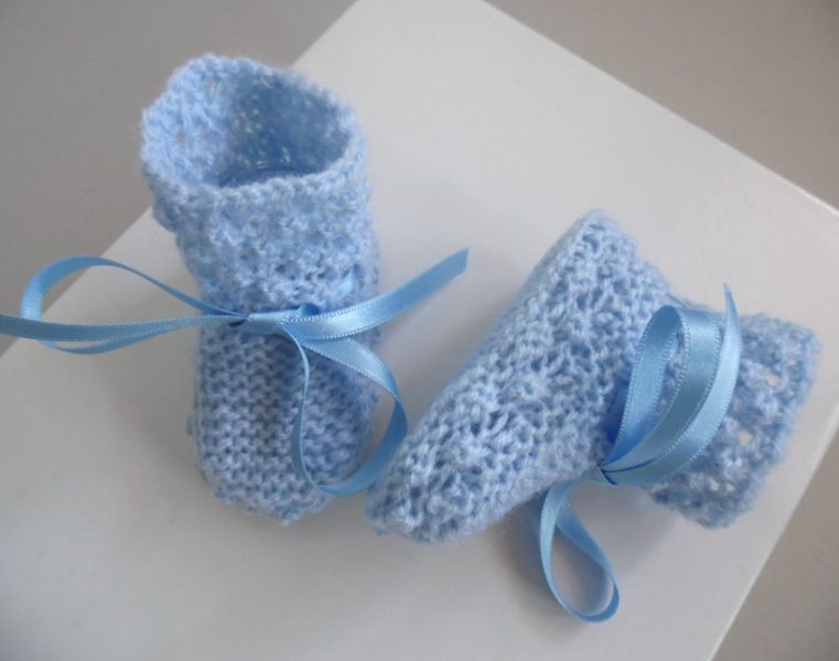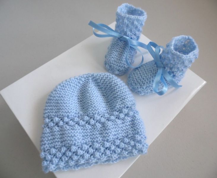Tricot laine bébé fait main : ensemble cadeau bonnet et chaussons bébé en vente sur...