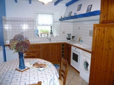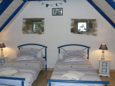 - Longère bigoudène, très calme, entre mer et campagne, située dans un écrin de verdure, tout près d'une chapelle et d'un four à pain du XVI ème siècle... A 550 m de la plage. Maison décorée sur le thème de la mer. Maison mitoyenne avec étage pouvant accueillir 4 personnes - possibilité de mise à disposition d'un lit bébé. A l'étage, une chambre avec un lit deux places, une autre avec deux lits une place, une salle d'eau et un wc indépendant. Au RDC, une grande pièce à vivre avec cheminée, coin cuisine équipée avec lave-vaisselle, congélateur, micro-onde, réfrigérateur, lave linge ... Séjour salon avec TV,Lecteur DVD, TNT, Radio K7 CD et portable à carte et wc indépendant. Le sèche-linge est commun à celui de la propriétaire. Un grand jardin privatif, arboré et très fleuri, avec une terrasse, un salon de jardin, un barbecue, des relax et un parking privé. PROMO FEVRIER LA SEMAINE A 230€ + (charges) http://www.ouest-cornouaille.com/bretagne_sud_finistere/vos-vacances-de-fevrier-2011/57