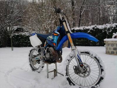 - je vend mon yz 125 de 2004,prix: 1200€ il est en très bonne état ,rien a prévoir.il marche très fort car il est équipé: -ligne d échappement bud racing HGS.(petite cartouche) -culasse bud racing (bleu) -boite a clapet V-force sinon elle est équipé avec: -té de fourches scar. -guidon pro taper neuf. -embrayage neuf. -roulements de biellette neuf. -cal pied scar. -jantes excel grises. -amortisseur arrière PMX. -protège cadre CRD.(pour le frottement des bottes) Lors de l'achat je donne la moto équipé avec les pièces si dessus,mais je donne en plus toute les pièces d'origine. + quelques pièces de rechanges. Le 125 a toujours été tres bien entretenu apres chaque sorti,il a roulé sur les terrains avec licence.