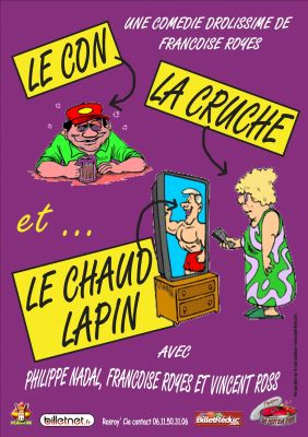 - Du 17 mars au 3 avril A 21h00 les jeudis, vendredis, samedis et dimanche séance suplémentaire à 16h00 le dimanche âu Théâtre de la Violette 67 chemin Pujibet 31000 Toulouse (métro Borderouge) Bernard et Gilberte sont un couple de français moyen ... mais très moyen Des Beaufs de première quoi. Ancrés dans un quotidien plus que banal Bernard et Gilberte n'ont plus d'espoir. Pour lui seule les victoires de l'OM compte pour elle c'est la télévision et les magazines féminins. Pourtant leur vie va basculer quand Gilberte gagne un jour un concours qui lui permet de recevoir une célébrité chez elle. Ce que le couple ignore c'est qu'ils vont devoir accueillir Rocco Tadurci star ... du X. L'arrivée de l'étalon va bouleverser le quotidien de nos 2 lascars. Auteur : Françoise Royès Artistes : Françoise Royès, Philippe Nadal et Vincent Ross Metteur en scène : Vic Time Réservation 06 85 70 59 13 ou 05 61 73 18 51 ou 06 11 50 31 06