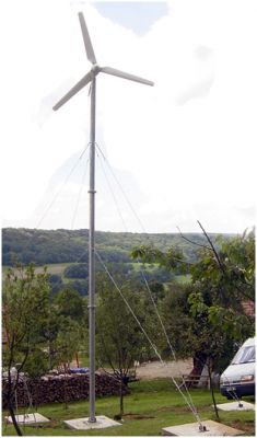 - Le mistral 2KW, Hybride Kits complets hors réseau Spécifications Puissance nominale: 2000 W Max Power: 3000 W Diamètre du rotor: 3.20 m Contrôle de charge: Automatique Limitation de vitesse: Automatique Générateur: aimants permanents Vitesse de démarrage du vent: 2,5 m / s Vent Vitesse nominale: 9m / S Tension nominale: 120V (sortie éolienne en triphasé) Hauteur du mat Haubané : 9 M 3X3M Poids net: 39 kg (à l'exclusion de la queue et pales) Comprise. : Générateur, pales, contrôleur de charge, Onduleur 2000W avec sortie 220V mat Haubané, câblages électriques, et de fixation, manuel d'utilisation fr. La garantie de la turbine et du dispositif de contrôle est de 1 an et celle du convertisseur de 6 mois à compter de la date d'achat. Batteries non incluses Vendu séparément 12V 200AH Pour cette Eolienne il faut adopter 10 batteries de 12V, connectés en série 12V +12V ........ =120V Prix Le Mistral 2000: 2230 Euro ttc. Site : http://www.mecahitec.com Hybride : ajout de panneaux solaires Le Mistral 2000W : Vous pouvez ajouter 10 x 60 Watt = 600 W total. 12 V x 10 pan. en séries =120 V.