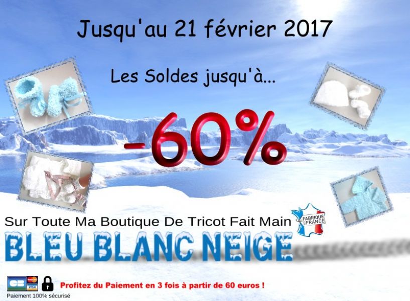 • Les Soldes sur ma boutique tricot fait main : jusqu'à moins 60 pour cent sur ma boutique en ligne tricot laine fait-main BLEU BLANC NEIGE (voir google)