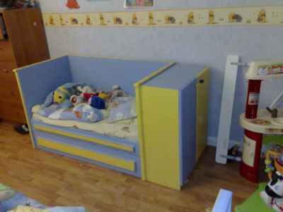 • LIT ENFANT EN BOIS FABRIQUE SUR MESURE EN BOIS AVEC UN PLACARD ET UN TIROIR DE RANGEMENT AVEC SOMMIER ET MATELAS; POSSIBILITE DE LE PONCER ET CHANGER LE COULEUR LE PRIX PEUT SE NEGOCIER