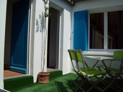 - Location meublee rochefort 17 cure thermale rdc 35m² centre ville http://www.location17.fr joli meublé de 35m² tout confort, au rez de chaussée entrée indépendante, terrasse ensoleillée de 12m² avec salon de jardin plein centre ville de Rochefort, idéal pour couple avec enfants ou personnes se rendant au centre thermal connu pour ses bienfaits A proximité de la cure. Tarif de 170 € à 350 € la semaine selon saison - draps et linge de maison fournis (Tarif préférentiel curiste, cure de 3 semaines selon saison et disponibilité, électricité en sus) Entrée côté cuisine entièrement équipée : plan de travail, double lavabos, plaque de cuisson 4 gaz avec hotte cheminée, four à chaleur tournante à pyrolyse, lave vaisselle, lave linge, séche-linge, cafetière électrique, grille-pains, micro-onde, ensemble table plateau de verre & 4 chaises en fer forgé Salon avec canapé convertible, table basse et TV écran plat LCD 81 cm avec TNT intégrée, lecteur DVD Salle de bains avec baignoire et douche