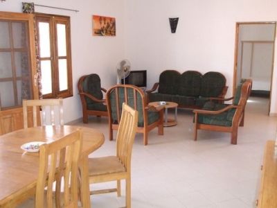 - A louer à la semaine, quinzaine, mois.. Villa 110 M2 tout confort avec piscine et douche extérieure,( entretenue par nos soins). Terrasse ombragée, transats, mobilier extérieur, barbecue. Grand Séjour, salon, cuisine ouverte, 3 chambres, 2 salles de bain...équipement électroménager neuf, literie neuve, téléviseur,...La Villa dispose d'un groupe électrogène, d'un suppresseur. Le prix n'inclut pas les charges d’électricité, d'eau et les frais de personnel, Drap, serviettes fournis,( Fatou si besoin ). Situation :Petite cote , La Somone :Lagune, plage et village à 500 m. Prix variable selon la durée. ( Exemple 150 000 CFA la semaine ). Tel 00 221 77 423 38 96 Aida , gouvernante. Prix de la location entre 250€ et 350 € . Tel France 06 28 23 35 67