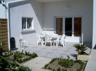 - Maison 4 /5 personnes maximum. Etage : 1, dans une habitation de plain pied Animaux non admis, Jardin à partager 3 pièces , dont 2 chambres, Coin cuisine, Salon, Salle à manger, 1 salle d'eau, 1 WC indépendant, grande terrasse couverte, cour fermée Surface habitable : 65 m2, Jardin : 150 m2. Parking privatif Literie : 2 lits 2 places, 1 lit 1 place. Lave vaisselle, lave linge, télévision, cuisinière gaz, four, micro-onde, réfrigérateur, cafetière, grille pain, Bouilloire, Barbecue, Cour, Salon de jardin, Chaise longue, Parasol, Fer à repasser, Table à repasser, Sèche cheveux, Aspirateur, Chauffage électrique, Situation : Vue sur Jardin de face. Orientation Sud. Proximité de Royan Sainte et Rochefort, île d'Oléron : 15 Km Plage : 5 Km, Commerces : 400 m, Restaurant : 500 m, Centre Ville : 400 m, Port : 700 m, Activités alentour VTT / Vélo, Voile, Golf, Jet ski, équitation, Tennis, Plage surveillée, Cinéma, Sports nautiques, Randonnée, Forêt, Parc d'attractions, Pêche, Casino, Thermes, Sports aériens Location : du samedi au samedi. Prix de 300 à 660€ charges comprises, acompte/arrhes à la réservation, remise des clés par le propriétaire Téléphoner le soir.