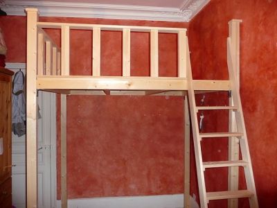- Mezzanine 200 x 150 cm 890€ Couchage 190 x 140 cm Structure 100 % sapin massif neutre Sections des poutres 82 x 60 mm Finition À peindre, à vernir, Où neutre 2 balustrades fournies haute 50 cm Hauteur sous passage 150 160 170 180 cm Escalier en sapin massif >> interchangeable À votre convenance Profondeur de marche 9 cm Encombrement 60 cm Plancher en pin massif épaisseur 20 mm Livraison et montage offerts Paris