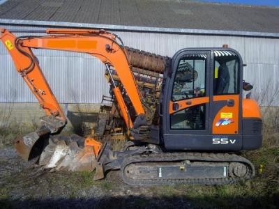 • MINI PELLE DOOSAN SOLAR S55 PLUS EN TRES BON ETAT MUNI DE 5 GODETS ( 30,45,60,75,1.5 ) ET D'UN GRAPPIN HYDRAULIQUE GEITH AVEC ATTACHE RAPIDE LIGNE BRH JAMAIS UTILISEE CLIM,RADIO CD, ANTI VOL