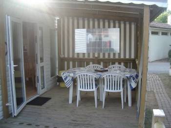 - Terrain 4 étoiles,Mobil home de 40 m2 avec terrasse couverte,3 chambres,2 salles de bain,2 wc,four électrique,micro onde,frigo-congélateur,estincteur,radio,télévision avec antenne parabol,cafetière,kit complet de cuisine,housses de matelas,couettes,oreilliers,salon de jardin,bains de soleil,cache bouteilles de gaz,abris de jardin aménagés. Grande piscines avec tobogan,pistes de glisse,hamam,jaccuzy,solarium,remise en forme,clubs enfant,animations jour et nuit. prix à débattre..........
