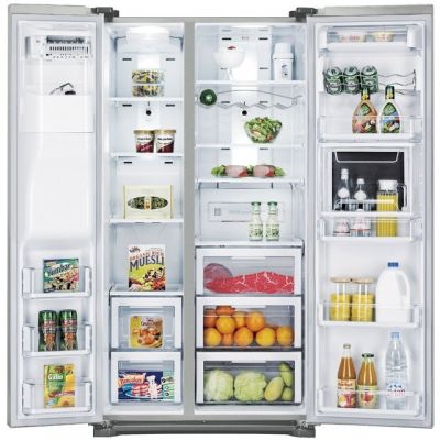 - SAMSUNG RSG5PURS Réfrigérateur congélateur américain, home bar, 420 + 208 litres, froid ventilé total, énergie A+, inox anti-traces. Réfrigérateur Volume utile de 420 litres. Froid ventilé intégral : pour une conservation optimale des aliments, une température constante et homogène et un réajustement de la température après ouverture des portes. 5 clayettes en verre trempé dont 1 rétractable et 1 clayette porte bouteilles. 6 balconnets contre-porte dont 1 compartiment crémerie et 1 porte cannette. 2 tiroirs fruits et légumes, 1 tiroir zone 0-1°C et 1 range oeufs. Congélateur Volume utile de 208 litres, 4 étoiles. Froid Ventilé Intégral : pour une conservation optimale des aliments, une température constante et homogène et un réajustement de la température après ouverture des portes. Fabrique de glace intégrée à la porte : contribue au gain de place dans la partie congélateur et peut contenir 2 kg de glaçons. 4 clayettes en verre trempé, 2 tiroirs et 3 balconnets de contre-porte. Foncti