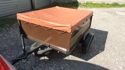- VDS remorque ERDE 250kgs avec 2 baches ainsi qu'un arceau pour surélever avec sa bache - Cette remorque peut se mettre debout pour gagner de la place et fait placard sous toile de tente - roue de secours - dimensions 1.20x1.00x0.40 -