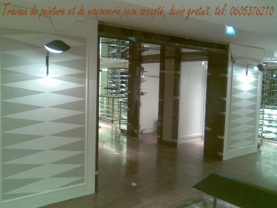 - Peintre en batiment experimenté et compétent offre ses services dans renovation habitat, travaux de peinture et de maçonnerie, travaux petit et gros oeuvre, reparation plafonds et murs abimés ou fissurés, suite à des dégats des eaux, pose du carrelage, pose de parquet, isolation et placoplatre, nombreuses réferences disponibles. Peintre en batiment disponible immédiatement, devis gratuit. Travail de precision et de qualité. Prix avantageux et en plus Chéque emploi service accepté!!! Paris et Ile de France. Tel: 0605376210