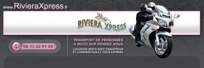 - SARL Riviera Xpress, Transport de Personnes à Moto est également une Société inscrite au registre des transporteurs de marchandises et propose la livraison plis et colis express dans la journée sur Alpes Maritimes,région Paca , voire toute destination sur le territoire national. Licence Transport de marchandises n° 2007/93/0000958 - Livraison en moins d'une heure dans 1 rayon de 30 km sur les Alpes Maritimes à partir du lieu de prise en charge - Service Coursier XPRESS en Région PACA: Livraison de vos Plis et Petits Colis Urgents remis en main propre dans les 3 heures suivant leur prise en charge dans les ALPES MARITIMES à destination de MARSEILLE, AVIGNON, SISTERON, DIGNE............ et inversement à destination du 06 et de la Principauté de Monaco - Dans la journée pour toute autre adresse sur le territoire National