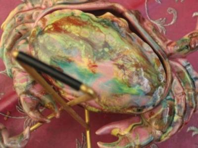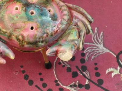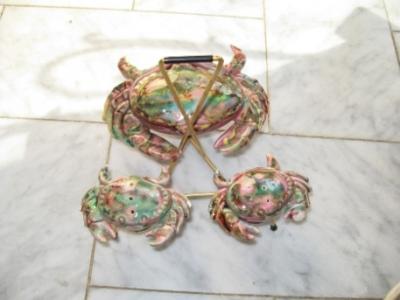 - A vendre salière, poivrier, moutardier en forme de crabe ; le tout monté sur une tige métallique dorée. Cet objet est ancien, une des extrêmités d'une patte d'un crabe est cassée. 10 € Tél 06 85 18 92 46