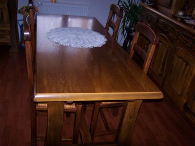 - Superbe ensemble salle a manger se décomposant de: 1 vaisselier 2 corps de 2.20 (orme ) 1 table 2.00x0.85 +2 rallonges de 0.40(orme) 4 chaises paillées 1 bibliothèque 1.70 en 2 éléments(chene massif) 1 meuble tv 1.20 (orme) 1 meuble a téléphone(orme) 1 petite table(orme) l'ensemble complet a prendre sur place coté Agen 2000.€
