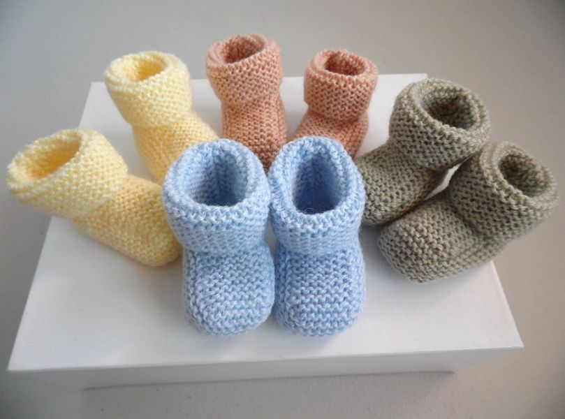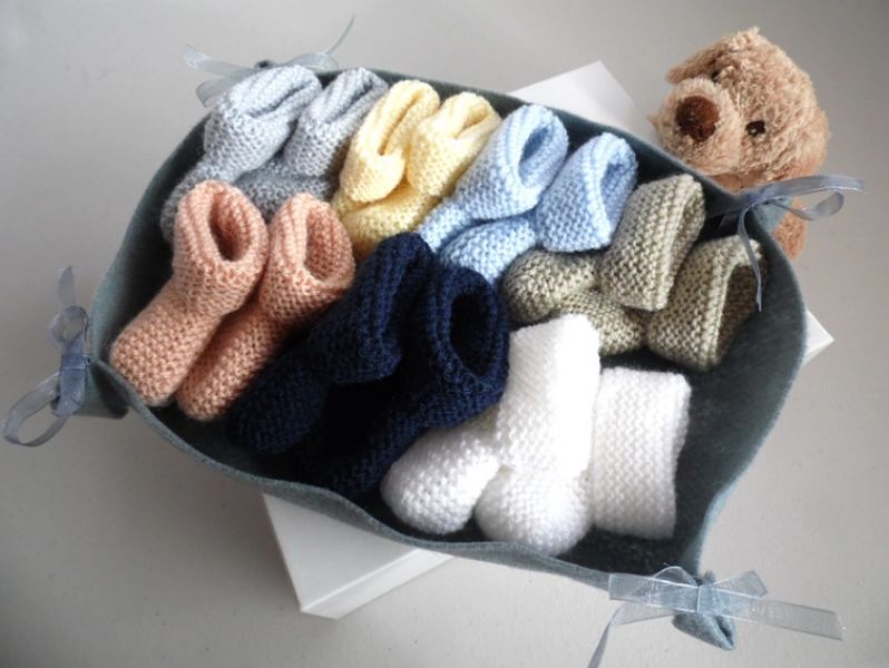 Tricot laine bébé fait main : ensemble cadeau bonnet et chaussons bébé en vente sur...
