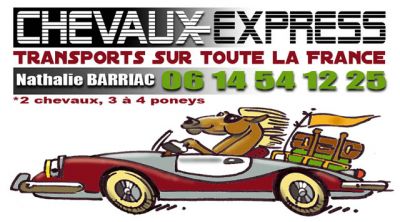 - Transporteur professionnel de chevaux sur toute la France. Toutes destinations. Licence N° 2009/93/0000963. SIRET 448 783 928. Certificat d'aptitude professionnelle pour le transport d'animaux vivants. Autorisation N° 13 105 de type 1, délivrée par la DDSV des Bouches du Rhône. Basé à côté de Salon de Provence, limite Bouches du Rhône et Vaucluse. - Véhicule récent (Renault Master 2007) dont la caisse, ventilée et éclairée, est neuve. - Pour 2 chevaux ou 3 poneys. - Les chevaux voyagent en tout confort, tête à l’arrière. - Pharmacie chevaux. - Protections, protège-queues fournis à la demande. - Assurance. - 38 ans d’expérience avec les chevaux. Transports toute l'année, prix raisonnables et dégressifs en fonction de la distance et du parcours. Contact : 06 14 54 12 25. Site Web : chevaux-express.fr