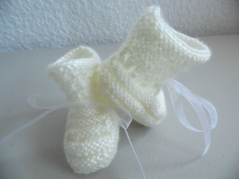- Tricot bébé laine, fait main : voici des petits chaussons naissance ou taille 1 mois, coloris écru et givre – Ils sont vendus par 2 paires sur ma boutique en ligne Créatoutcoeur (voir google).