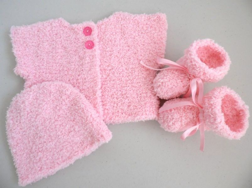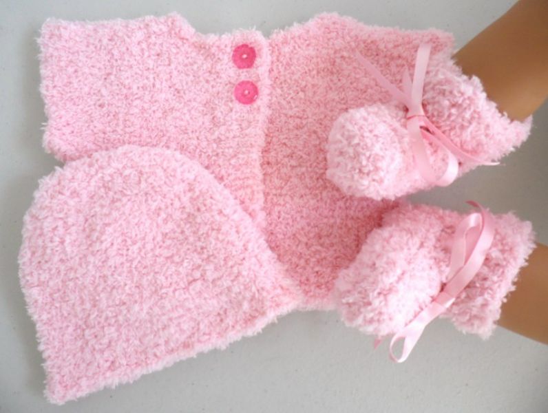 • Tricot bébé laine fait main ensemble cardigan