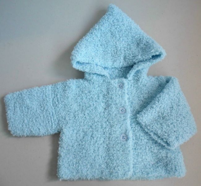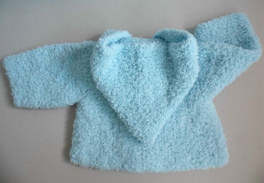 Tricot bébé laine fait main paletot bleu