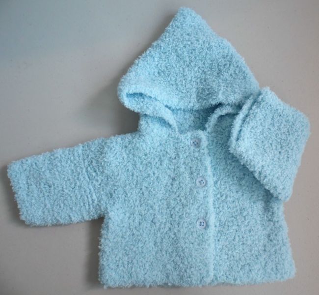 Tricot bébé laine fait main paletot bleu