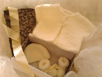 - Joli coffret bébé fille OPALINE (ou pack cadeau) comprenant un cardigan (appelé aussi gilet sans manche), un bonnet et une paire de chaussons que j'ai tricotés 100% fait main. Prêt-à-porter, tricot fait main Bleu blanc neige réalisé dans une matière très cotonneuse spéciale bébé donc très très douce pour le bébé. Taille 3 mois - coloris écru - Idéal en cadeau de naissance ou pour le plaisir de la maman ou de la future maman. Emballage cadeau avec boite dans les tons gris. 100 % polyester - Laine spéciale bébé Phildar - lavage 30°. Possibilité d'envoi postal emballage soigné. Renseignements par mail.