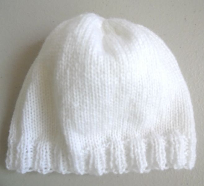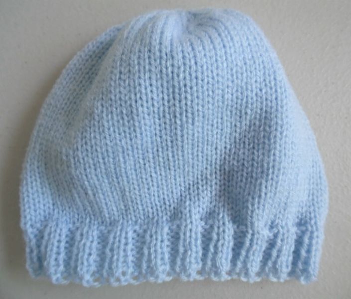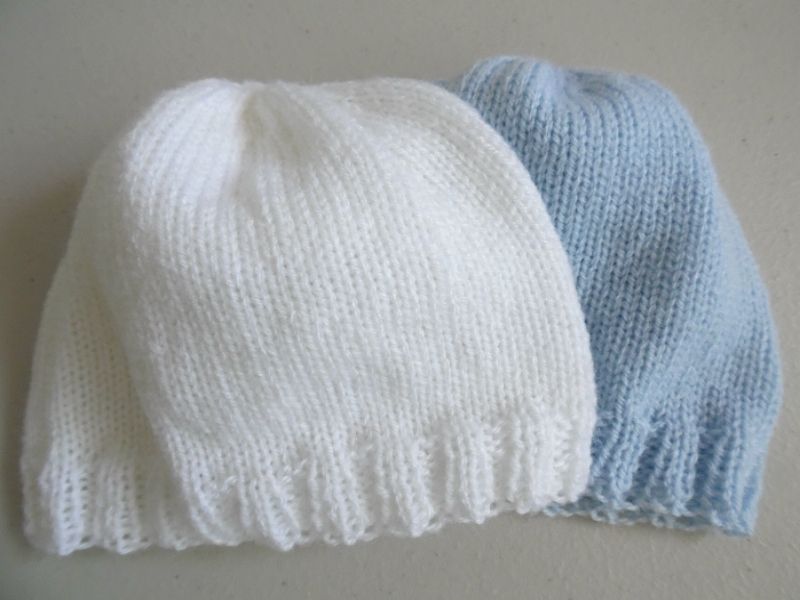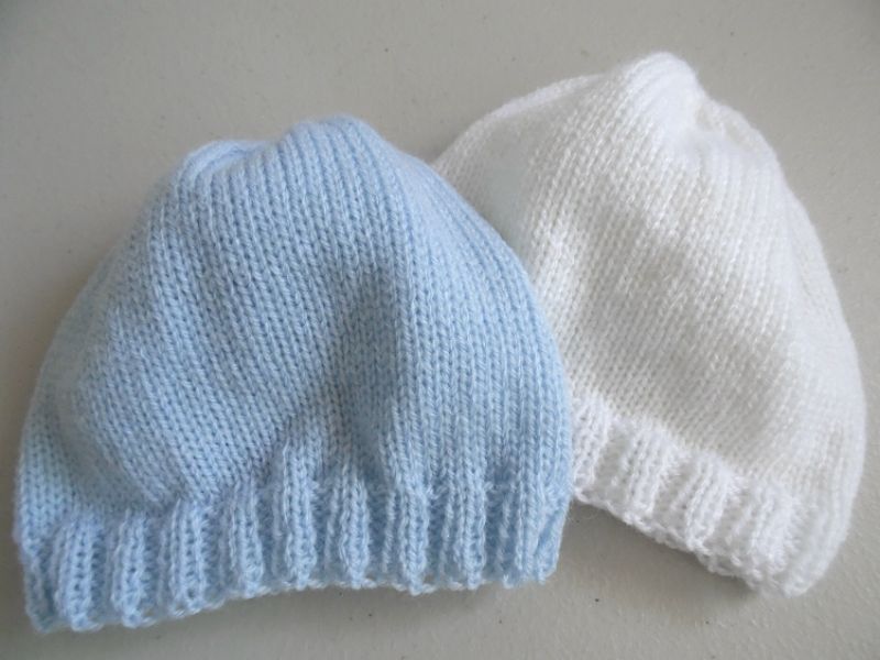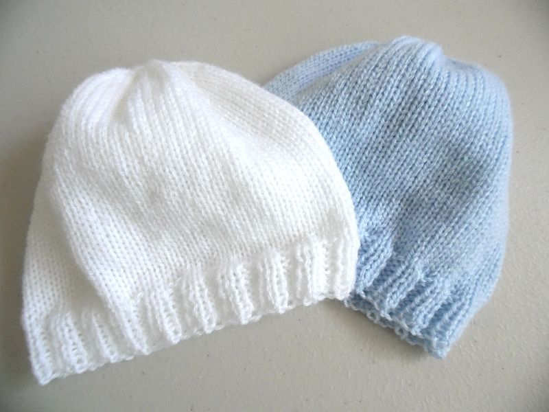 Tricot laine bébé fait main bonnets bleu blanc