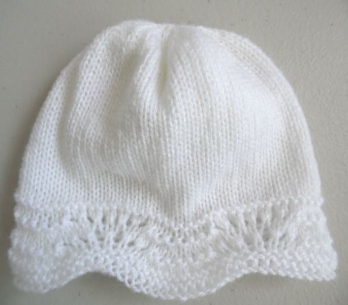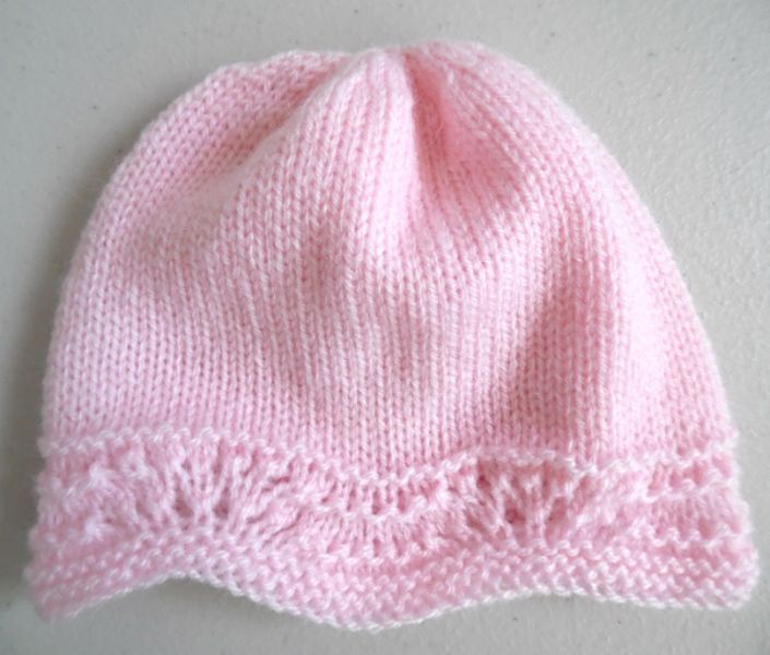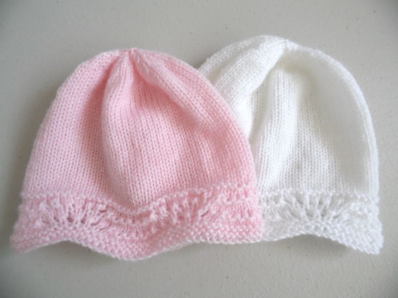 Tricot laine bébé fait main bonnets rose blanc
