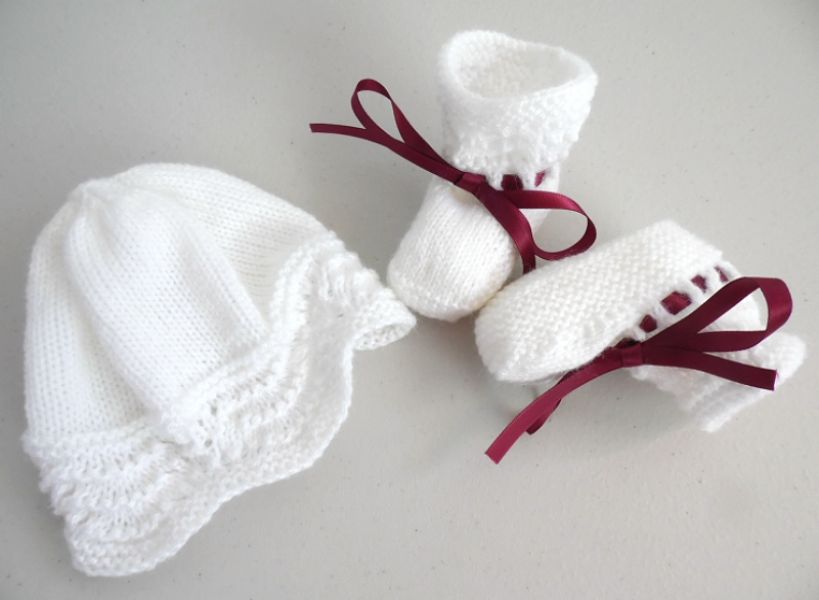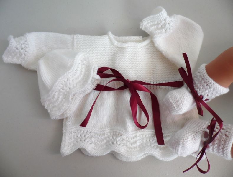 - Ma dernière petite brassière... ensemble pour trousseau naissance composé d'une brassière, d'un bonnet et d'une paire de chaussons, coloris blanc, ruban bordeaux tricoté aux aiguilles en laine Ciboulette de Bergère de France... En vente sur ma boutique Bleublancneige chez AlittleMarket (voir google). Découvrez plein d'autres articles sur mes deux boutiques en ligne dont des brassières, des couvertures, des bonnets, des chaussons, des ensembles etc...