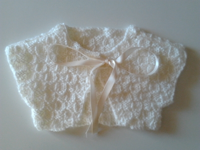 - Tricots et layettes bébé entièrement fait-main Vends gilets sans manche Fille, NEUFS, tailles 3/6/9 mois - réalisation entièrement fait main – coloris blanc ou bleu – fermé par 1 bouton rond - Texture PELUCHEUSE - 100% polyester - lavage 30° : 39,90 € PU frais de port compris + Vends Cardigan taille 3 mois Fille, NEUF, réalisation entièrement fait main - coloris écru – point mousse – fermé par 2 petits boutons ronds écrus - Texture COTONNEUSE – 100% polyester – lavage 30° : 39,90 € PU frais de port compris + Vends Cardigan Fille taille 1 mois, NEUF, réalisation entièrement fait main – coloris blanc - point fantaisie – fermé par un ruban blanc – Fil classique - 100 % acrylique – lavage 30° : 24,90 € PU frais de port compris – (Modèles BLEU BLANC NEIGE à partir de 19 €)
