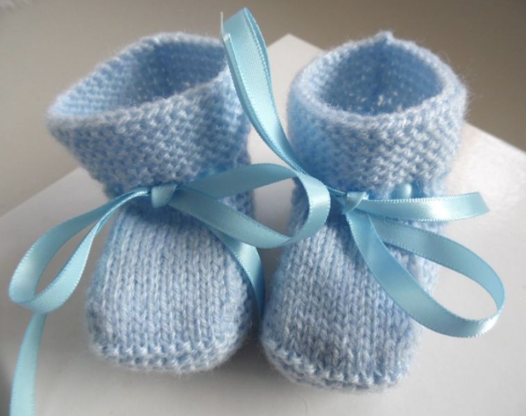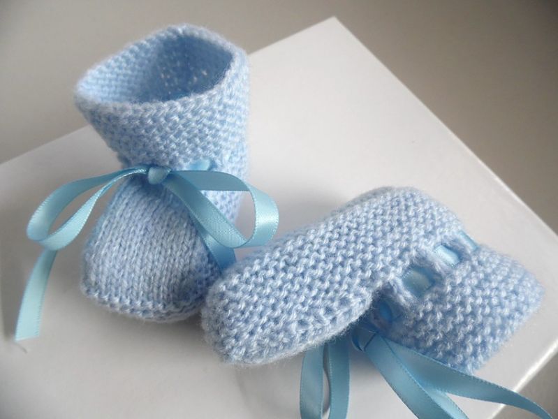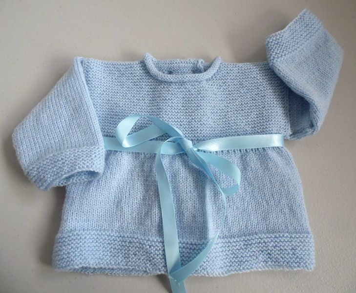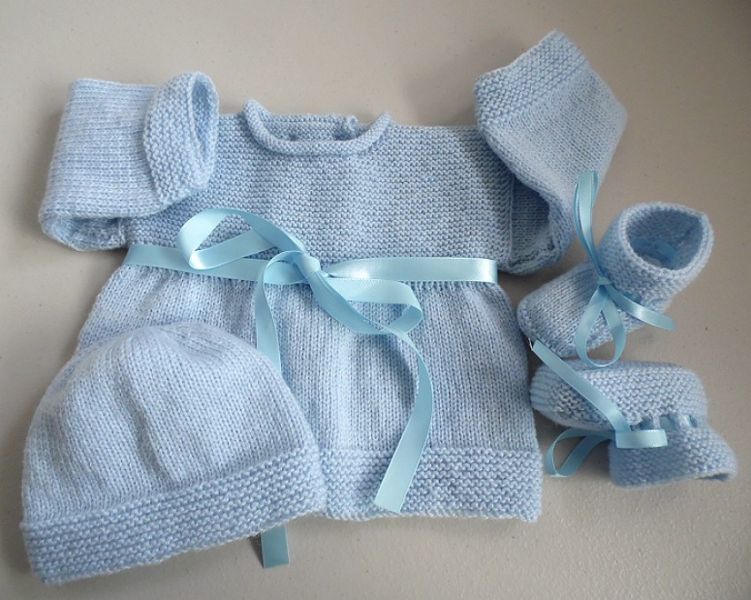 Tricot laine bébé fait main brassière bleue Ma dernière petite brassière... ensemble...