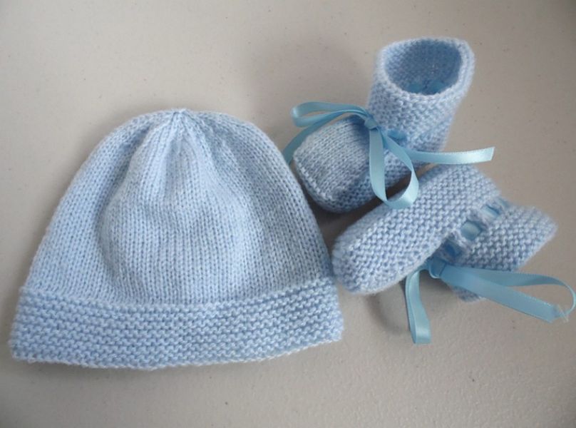 Tricot laine bébé fait main : ensemble cadeau bonnet et chaussons bébé en vente sur...