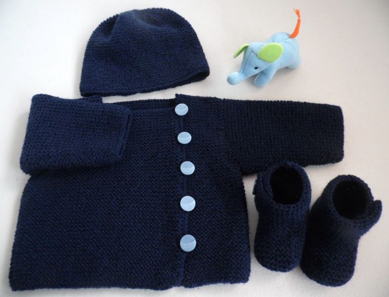 • Trousseau brassière garçon tricot laine bébé fait main : trousseau comprenant une brassière, un bonnet, une paire de chaussons coloris bleu marine et un bavoir, le tout entièrement fait-main en vente sur ma boutique en ligne (tapez Bleublancneige dans google) – Et Découvrez plein d'autres trousseaux sur ma boutique