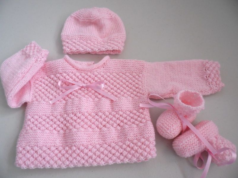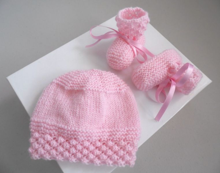 Trousseau rose naissance tricot laine bébé