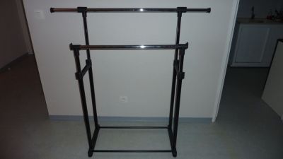 - Vds penderie mobile à double portant, réglable en hauteur jusqu'à 170 cm, montée sur 4 roulettes. Dimensions : 93x32 cm. Poids maxi 30 kg/barre. Couleur: noir/acier Objet d'occasion dans un état proche du neuf. Prix: 40€ tel: 0666084073