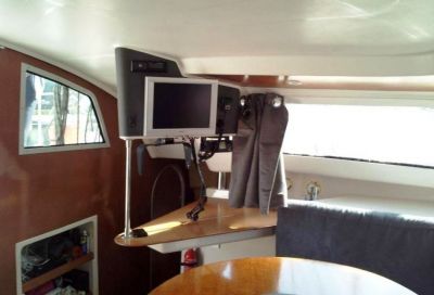 - Vends catamaran Tobago 35 de 1996/1997, moteurs Yanmar 2x2GM20 18CV, réservoirs eau 400 L, TV 12V avec antenne, eau froide et chaude sous pression, 3 cabines doubles + 1 pointe aménagée 1 personne, 1 SDE avec douche et WC électrique, réservoir eaux noires 80 L, sellerie carré alcantara de 2011, rideaux de 2011, réfrigérateur, réchaud 3 feux, four micro-onde, grand voile de 2011, génois sur enrouleur révisé en 2012, lazy-bag de 2012, centrale de navigation Garmin de 2011, pilote automatique ST 6000, GPS MLR Valsat 02 paramétré sur PC, VHF AIS neuve, BLU réceptrice Sangean, Radar JRC de 2006, radio cd, batteries démarrage 2x70Amp, batteries servitude 2x100Amp (2011), 1 panneau solaire 180W avec régulation, guindeau électrique, table de cockpit, bossoirs, siège barreur 2 places de 2009, bimini de 2012, douche de pont, passerelle, trampoline de 2012, coussins de cockpit de 2011, annexe FOB 2.40m + moteur Yamaha 4CV. Visible 66. Prix 110000€ TTC. Tél 0632678907 ou www.bleu2m.net